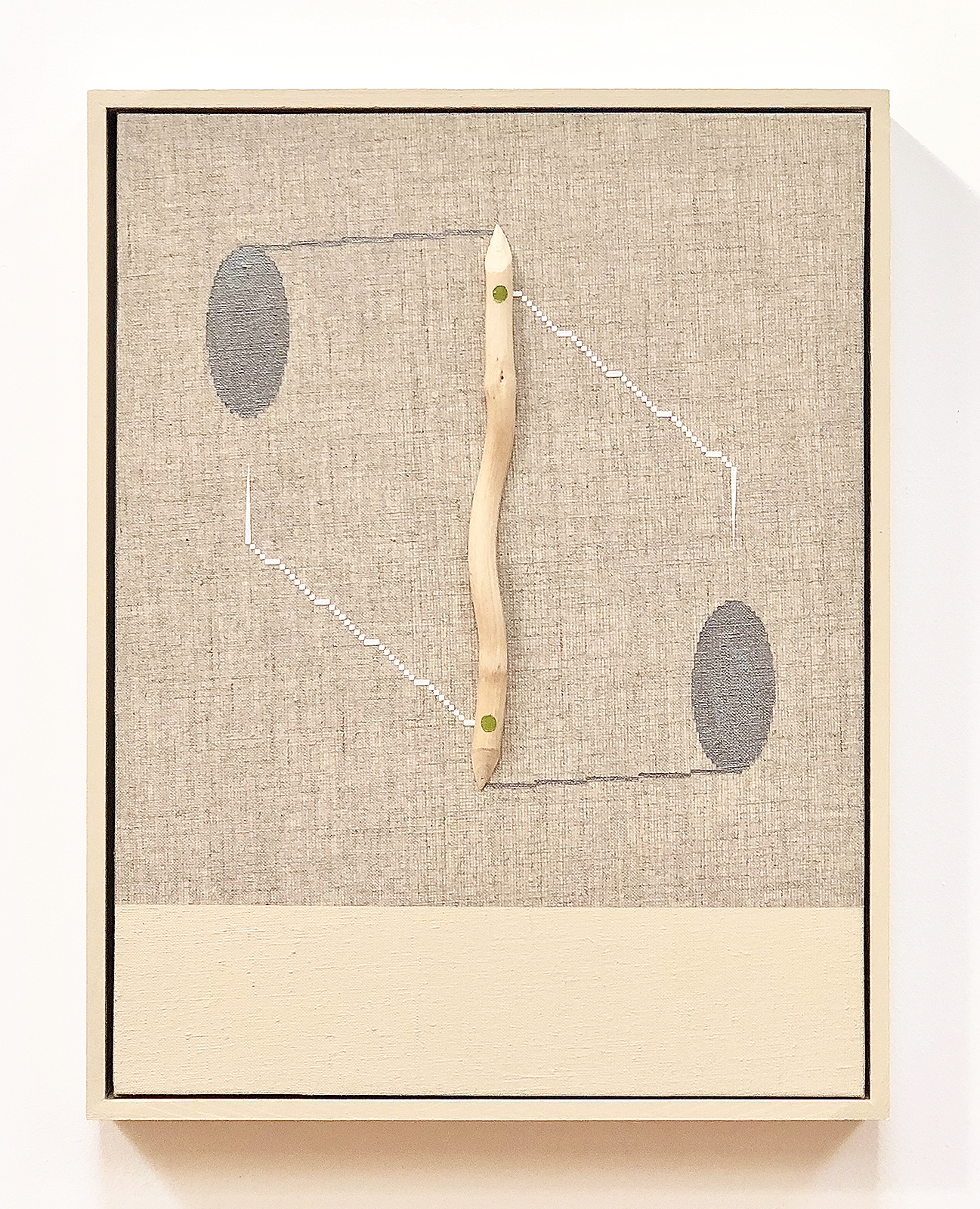 acrylic, iridescent acrylic, wood vine, on linen in artist’s frame