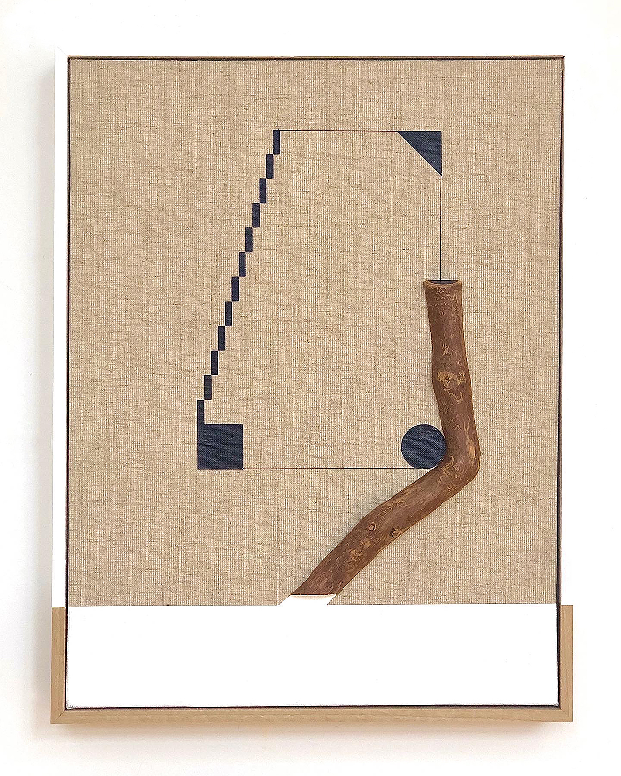 acrylic, swamp oak, thread on linen in artist’s frame