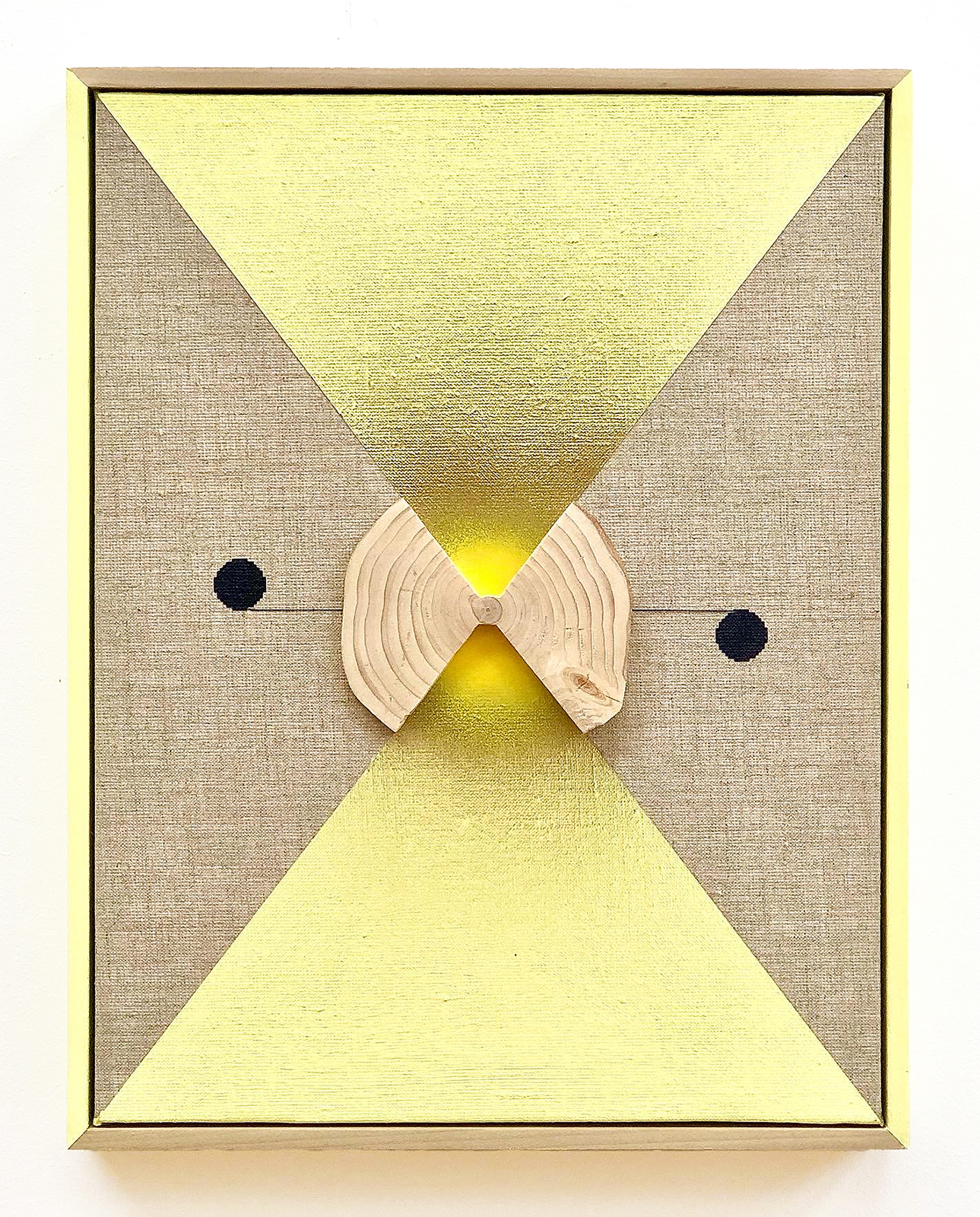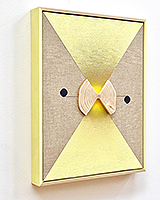acrylic, iridescent enamel, fir, thread on linen in artist’s frame