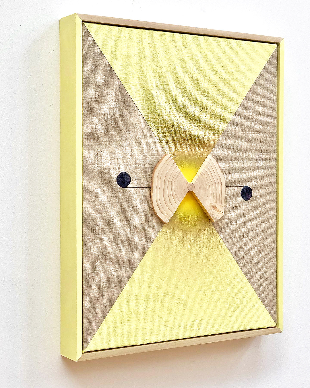 acrylic, iridescent enamel, fir, thread on linen in artist’s frame