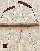 acrylic, fir, thread on linen in artist’s frame