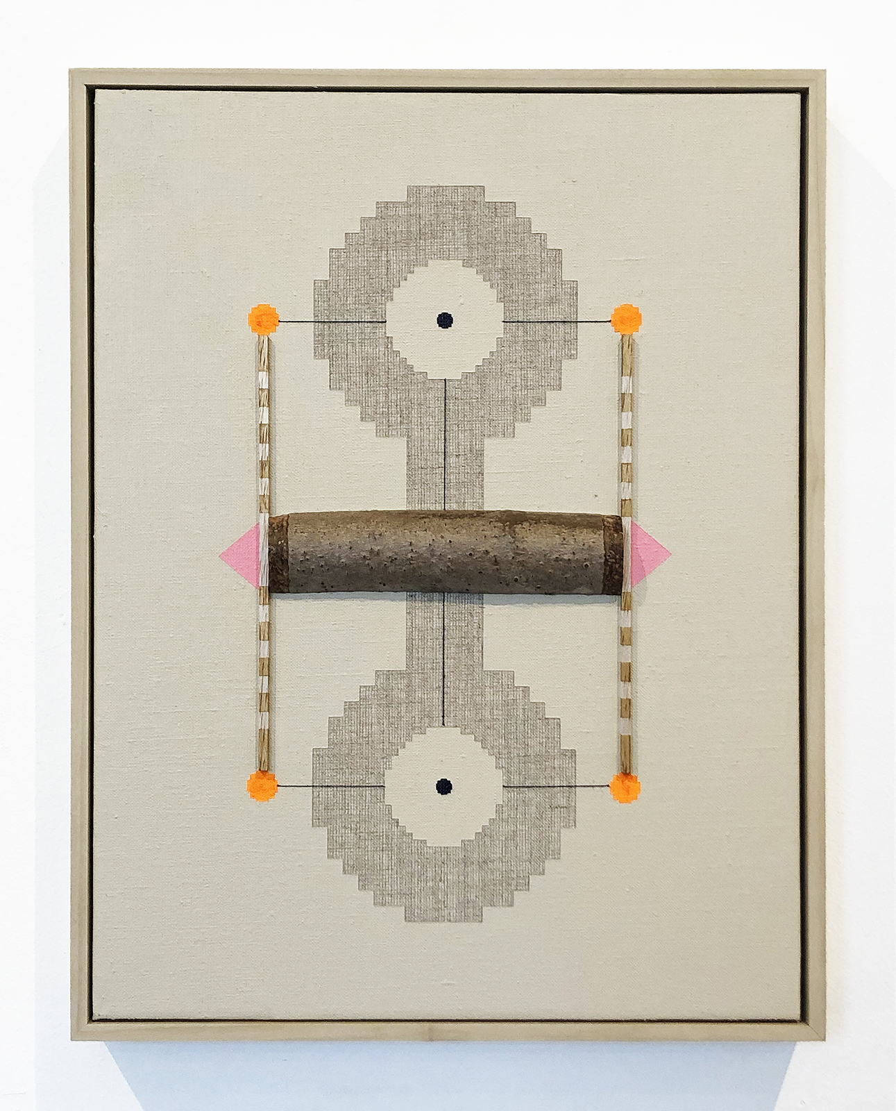 acrylic, fluorescent acrylic, balsam, maple, on linen in artist’s frame