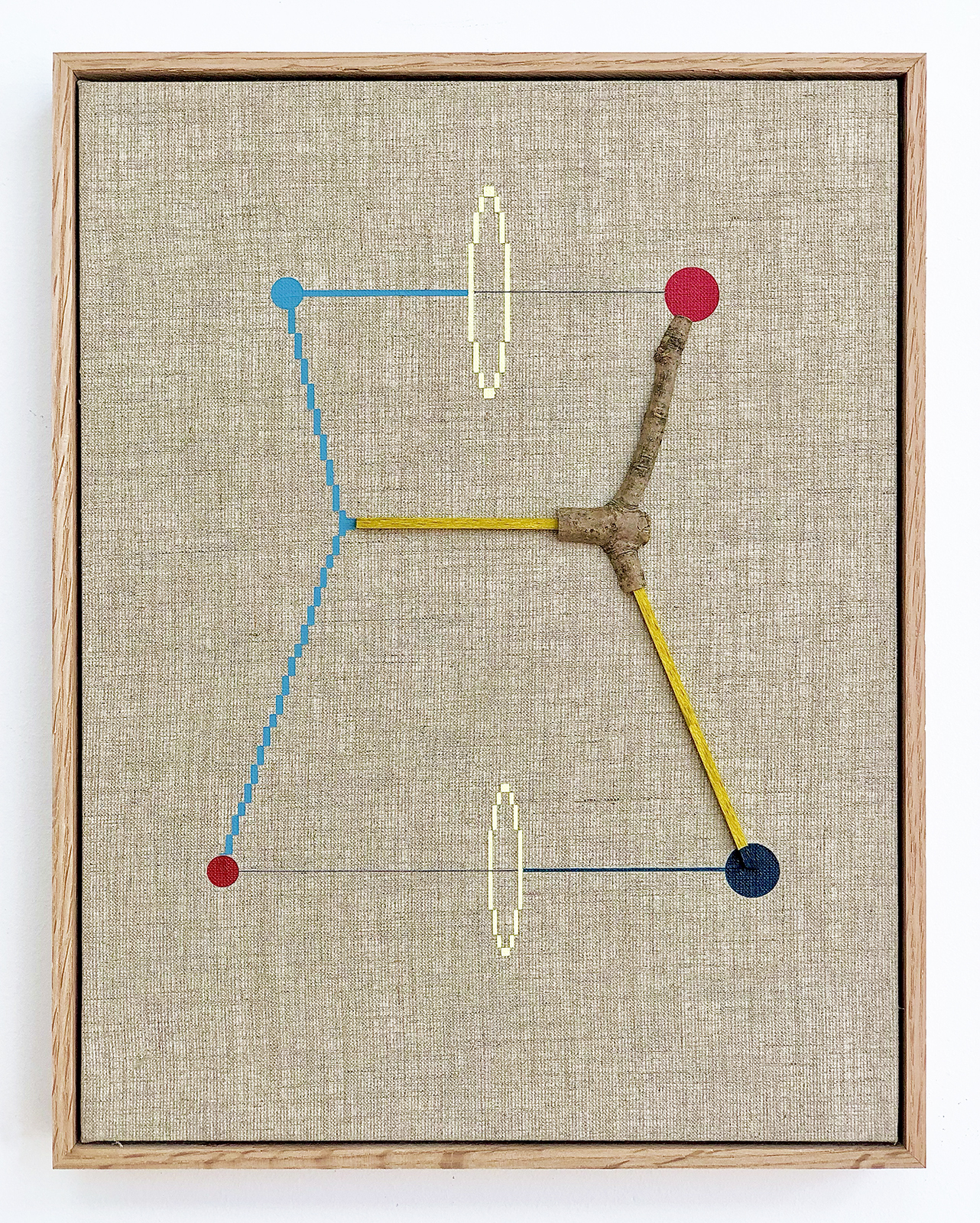 acrylic, balsam, maple, thread, on linen in artist’s frame