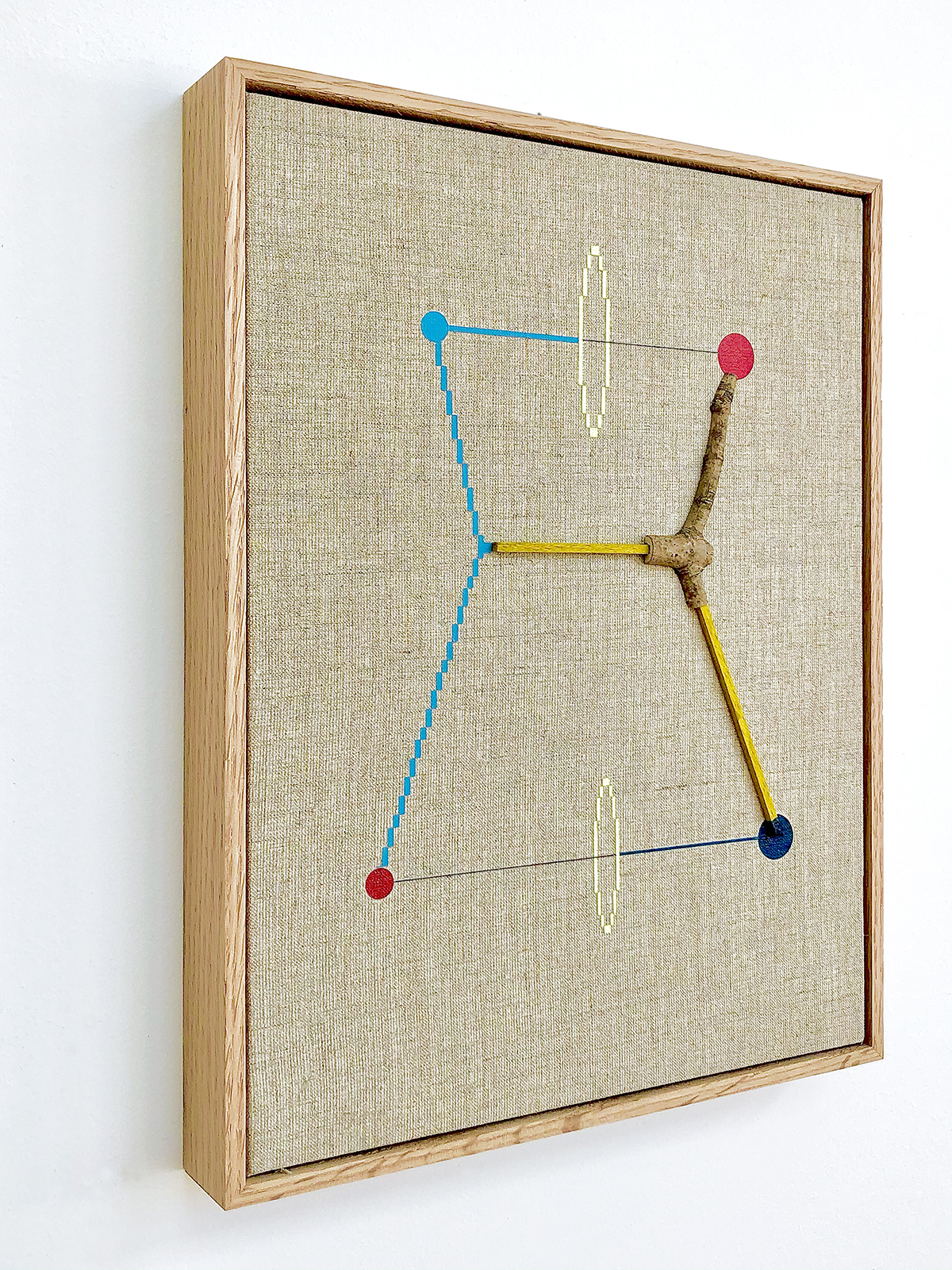 acrylic, balsam, maple, thread, on linen in artist’s frame