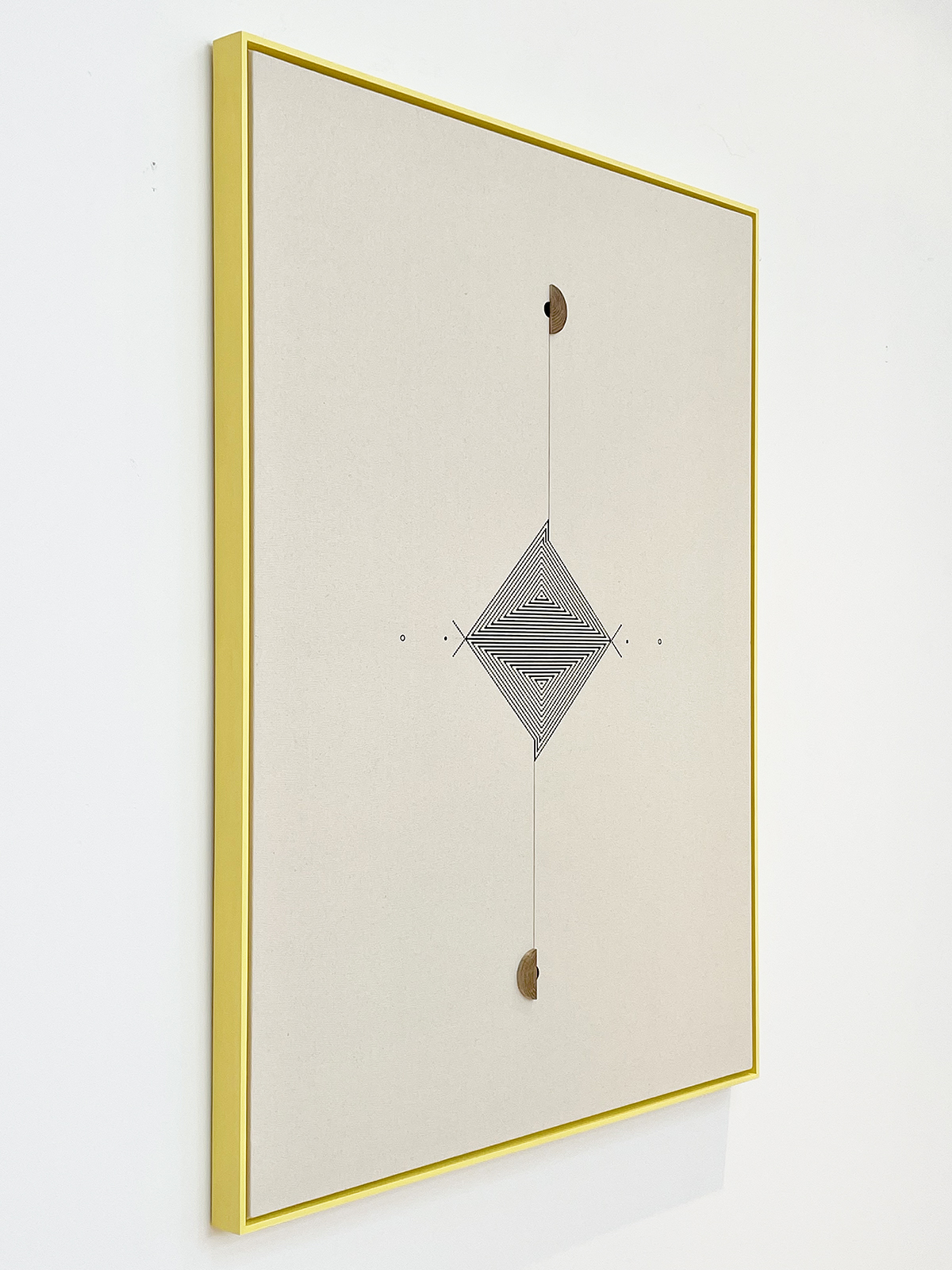 acrylic, oak, thread on canvas in artist’s frame