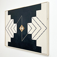 acrylic, iridescent acrylic, cherry, maple on canvas in artist’s frame