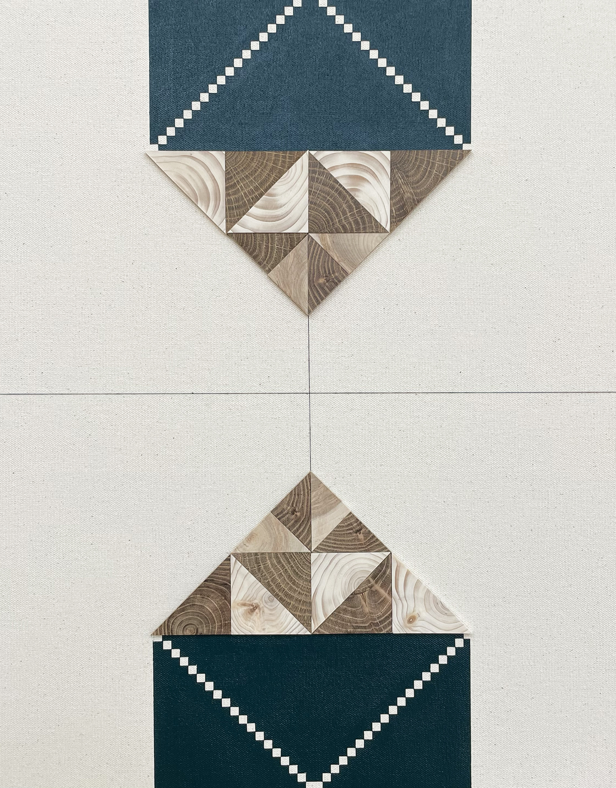 acrylic, fluorescent acrylic, cherry, maple, thread on canvas in artist’s frame