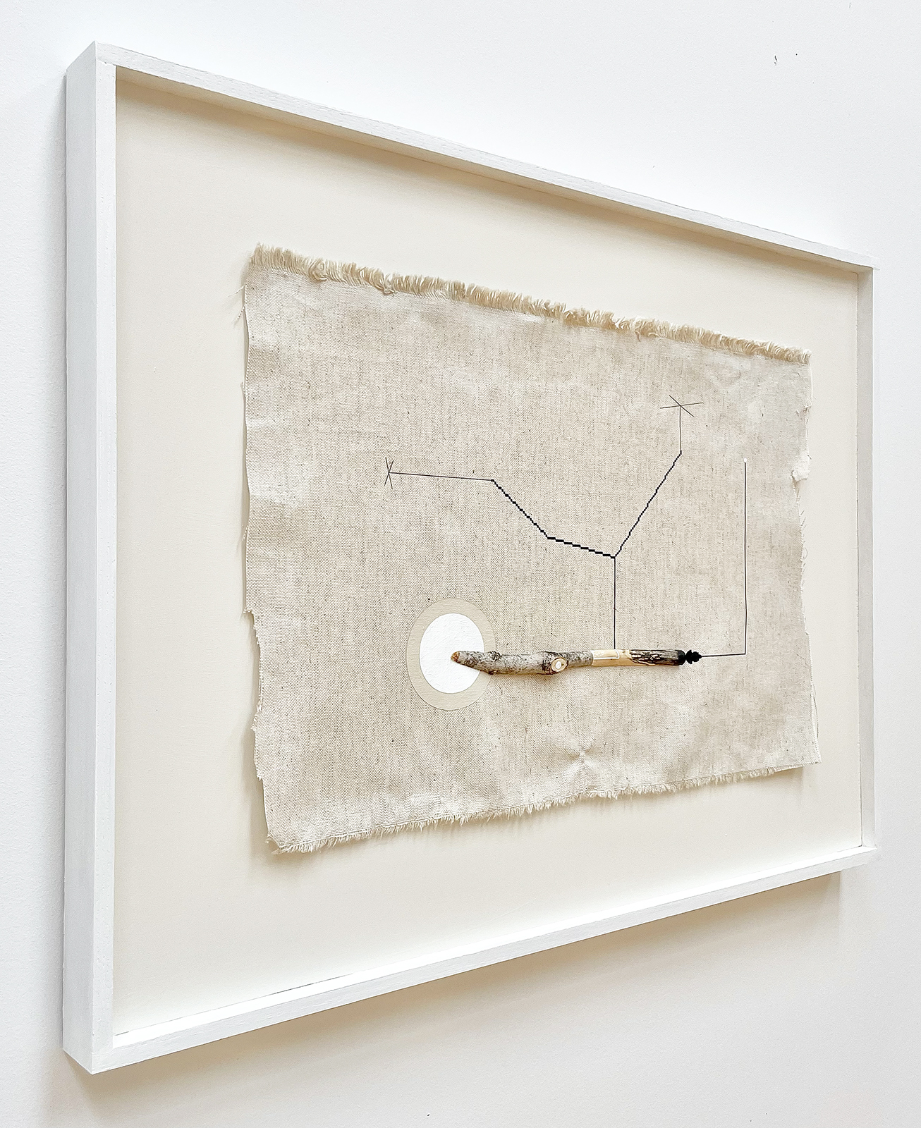 acrylic, pencil, various wood species on linen in artist's frame
